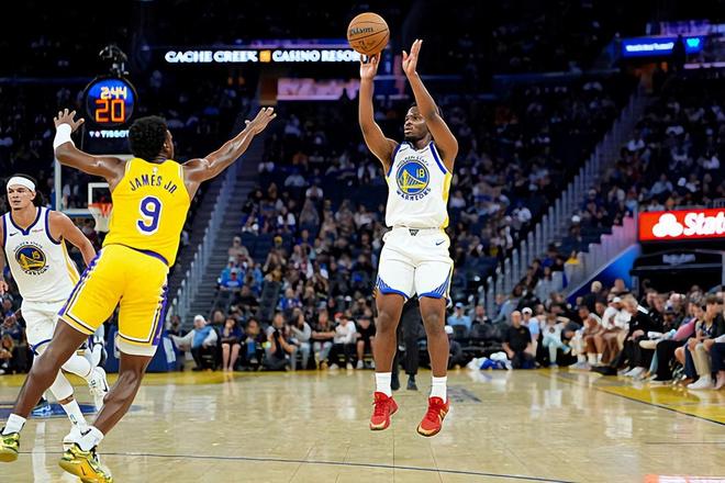 本场比赛中,在前一场季前赛中表现不佳的勇士后场新秀LJ-克莱尔(LJ Cryer)的表现有了显著的提升。克莱尔全场出场12分钟,投篮5中4,三分线外3中3,罚球4中3,得到了14分1篮板2助攻1抢断的数据,正负值更是达到了全场最高的+25。克莱尔在进攻端也是找回了自己的手感,他展现出了应有的外线投射能力,并且抓住有限的出手机会得到了大量的分数。不仅如此,克莱尔也具备一定的传球能力,他也能够在防守端起到不错的效果。克莱尔在本场比赛中在攻防两端的表现都是极其出色的水平,他在场上的效果也是有目共睹的。不夸张地说,要不是有克莱尔在比赛最后一节的强势表现,勇士想要在大比分落后的情况下扳回局面,根本是不现实的事情,他也是抢断能够完成逆转的大功臣。