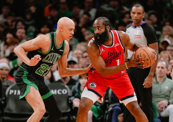 北京时间1月17日凌晨,NBA常规赛继续进行,快船客场挑战凯尔特人。此前快船战绩4胜8负,排名西部第11位;凯尔特人此前战绩是6胜7负,排名东部第11位。自从小卡对阵热火的比赛中遭遇脚踝扭伤后,一直处于缺战状态,本场依旧不打,已经连续缺席7场。整个球队陷入困境,此前遭遇一波6连败!直到上一场打独行侠,快船苦战双加时,哈登坚持了51分钟,轰下41分14篮板11助攻的大号三双数据,带队赢球。关于快船本赛季窘境,很多人都在为哈登鸣不平,包括退役的沃尔,以及昔日队友小里弗斯。