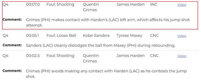 由于现场直播给出的慢放清晰展现出格莱姆斯的犯规动作,他补防时的确打到了哈登的手肘,并且力量不小,哈登出手动作明显被影响。