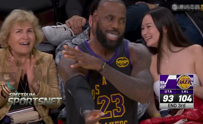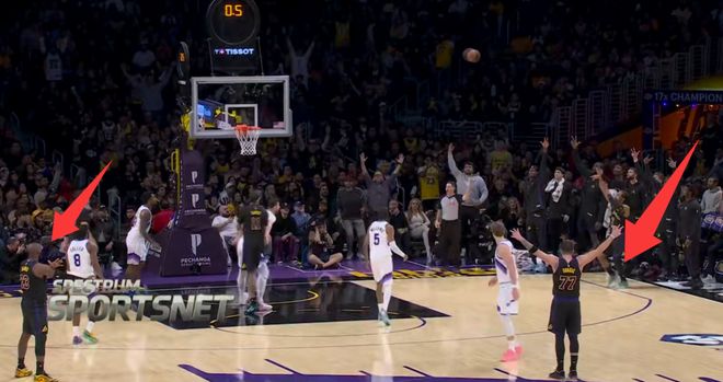 球还在天上飞着呢,球队老大的提前庆祝的动作都做出来了,不光是勒布朗,旁边的东契奇的提前庆祝动作也做出来了,詹东组合这种庆祝的场面,就说明他们对于队友投中这个球是非常有信心的。