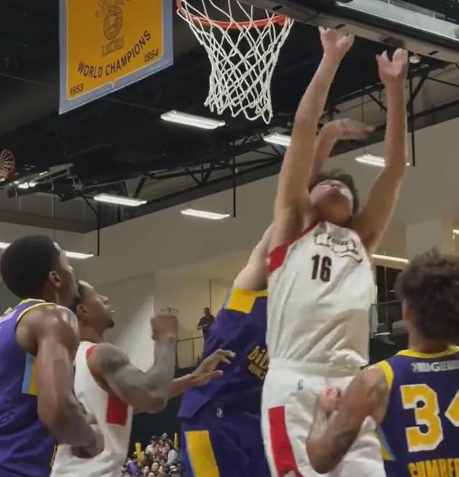在禁区站好位置,NBA发展联盟的中锋还真打不动杨瀚森。